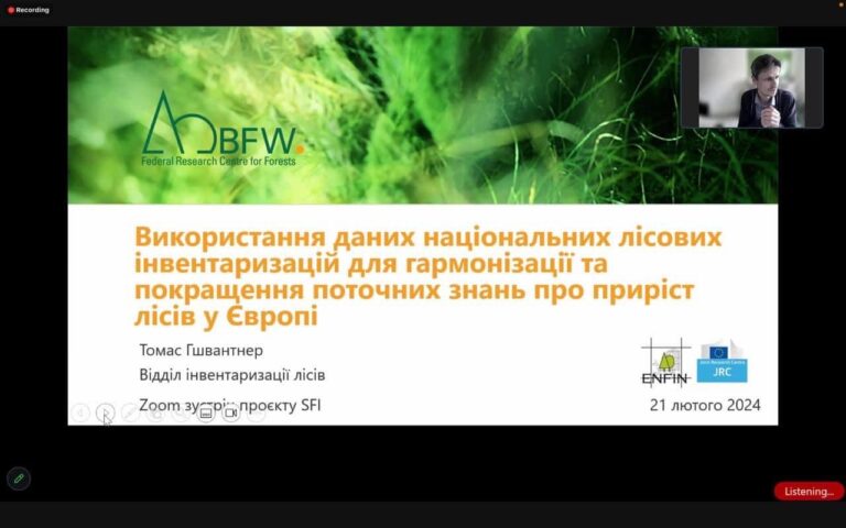 An online meeting was held within the framework of the project “Technical Support for Forest Policy Development and Implementation of the National Forest Inventory” (hereinafter SFI).